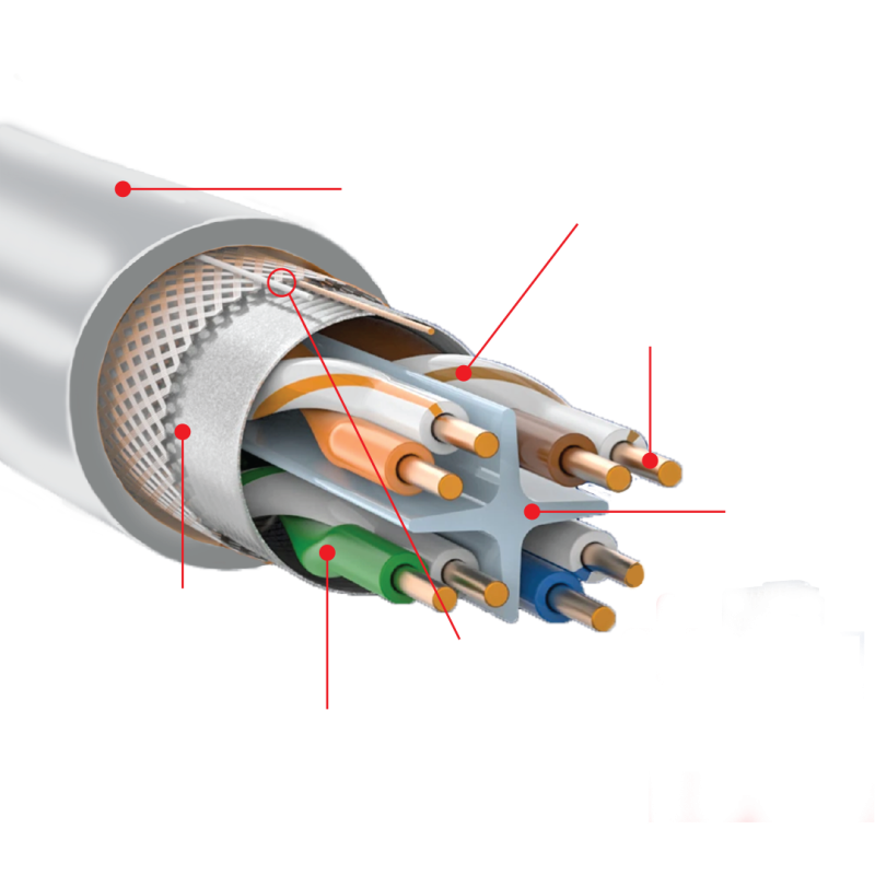 Cat 6 Unshielded Twisted Pair cables delivers various performance parameters that goes beyond the latest ANSI/TIA- 568.2- D-2018, ISO/IEC 11801-2017, IEC 61156-1-2007, GB/T 50311-2016, YD/T 926.2-2009,YD/T 1019-2013 Cat 6 stan- dard. When used as the horizontal cable, the channel provides ≥ 250Mhz of bandwidth. Produced by new imported Rose- ndahl equipment, with excellent and stable production process. Finished conductor meets domestic standard of 0.53mm in diameter, ensuring High quality. Excellent cross frame design, stable wire pair structure, reduce internal interference of cables and improve product performance indicators.