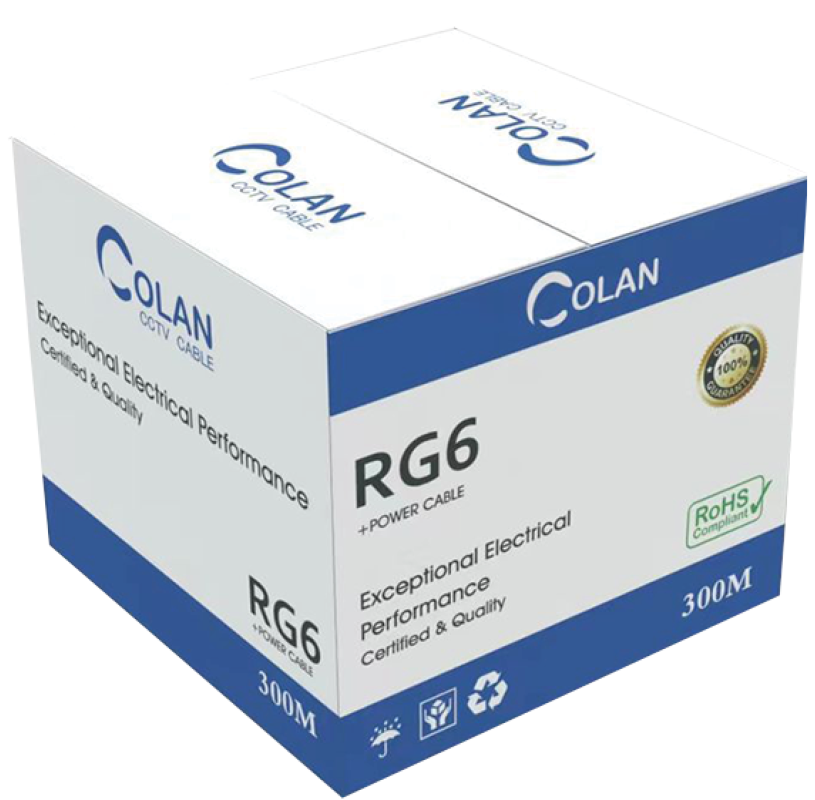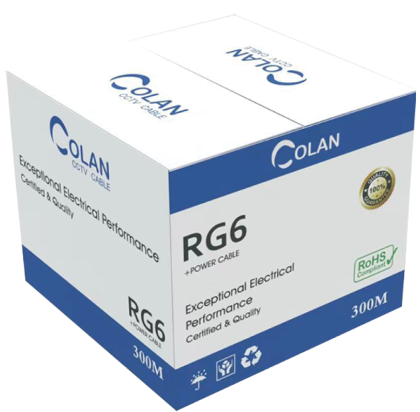 RG 6 with power cable is best used where cable needs to run over a longer distance, with 77% shield brai- ded, it is proven to last longer and has a capacity band- width that exceeds 3.0GHz. The shielding consists of an inner aluminum/polyester foil bonded to the insulation, an aluminum 36 AWG braid. Tight foamed Polyethylene insulating skin bonds around center conductor. ”Future- Proofing” the installation.